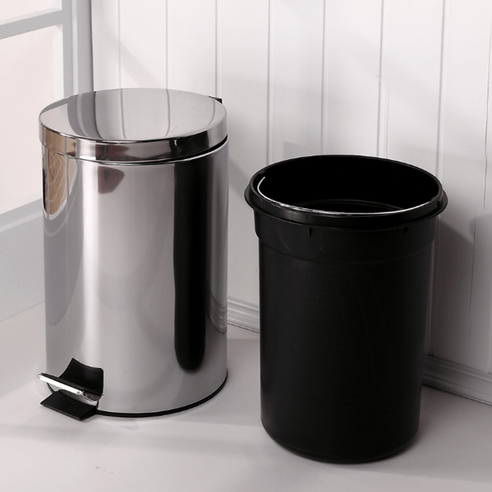 Transforme seu espaço com a Lixeira em Aço Inox Redonda com Pedal. Perfeita para banheiro, cozinha e escritório, esta lixeira de 5 litros combina elegância e funcionalidade.